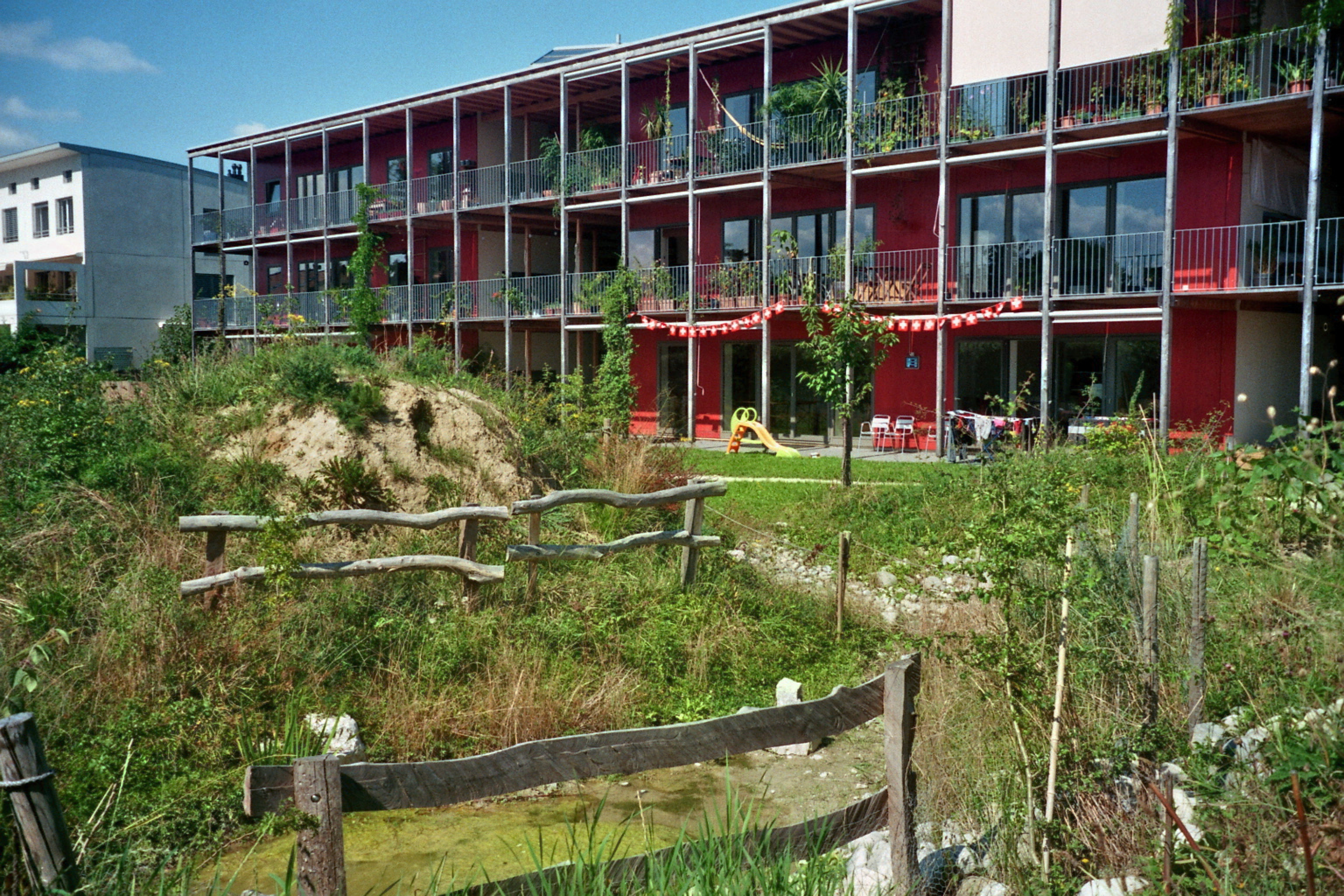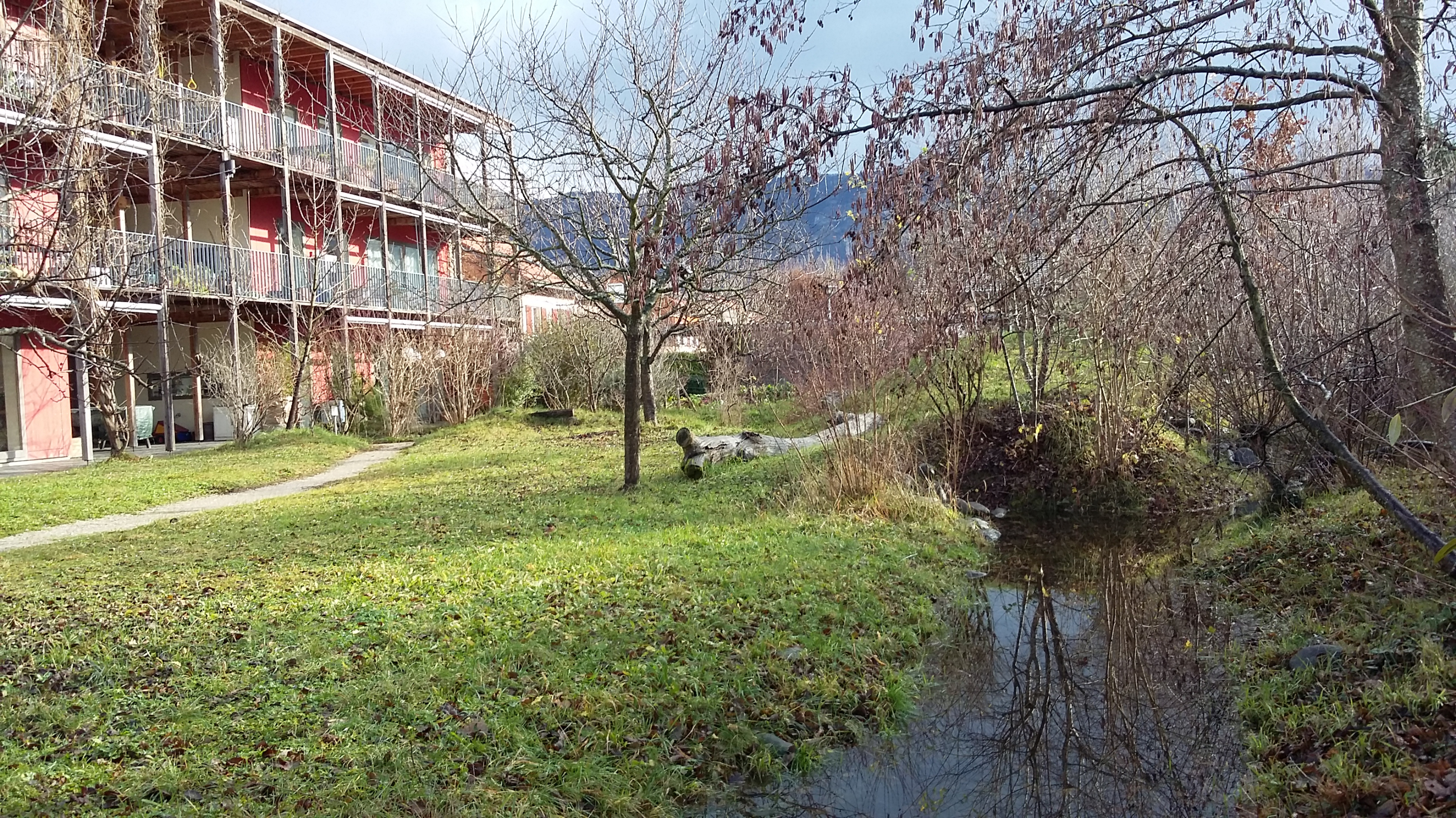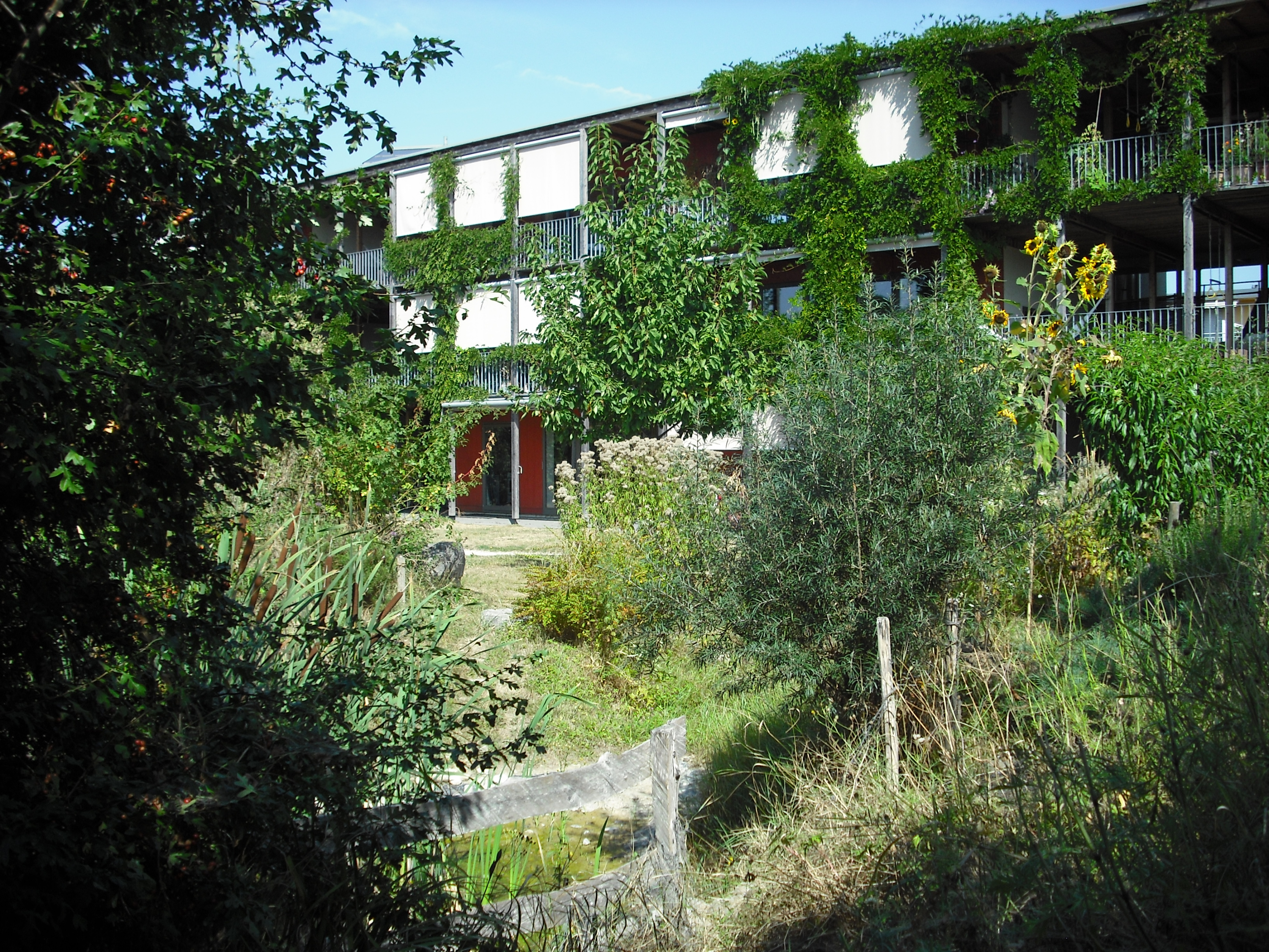 Il s'agit du premier immeuble du canton ayant reçu le label Minergie Eco. Il est doté d'un chauffage au bois et de panneaux photovoltaïque et thermiques. L'architecte, Stéphane Fuchs, a conçu un très bel immeuble à ossature bois avec un système de distribution alliant de très généreux paliers communs qui se poursuivent sur des coursives plus privatives.
